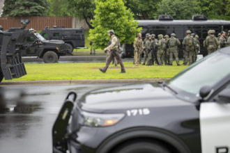 Hundreds of law officers fanned out across a Minneapolis suburb Saturday in…