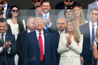 The Republican president, on his 79th birthday, sat on a special viewing…