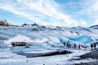 Sunlight scattered on the surrounding snow as we hiked single file, crampons…