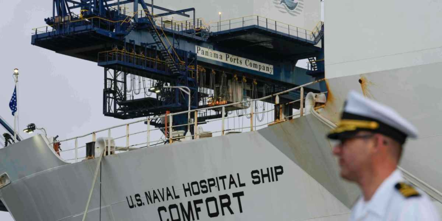 THE FACTS: The USNS Mercy and USNS Comfort are at a shipyard in Mobile, Alabama, according to social media posts from the shipyard showing the pair of white hospital ships alongside each other in late January. Publicly available ship tracking data show both ships are still in the shipyard.